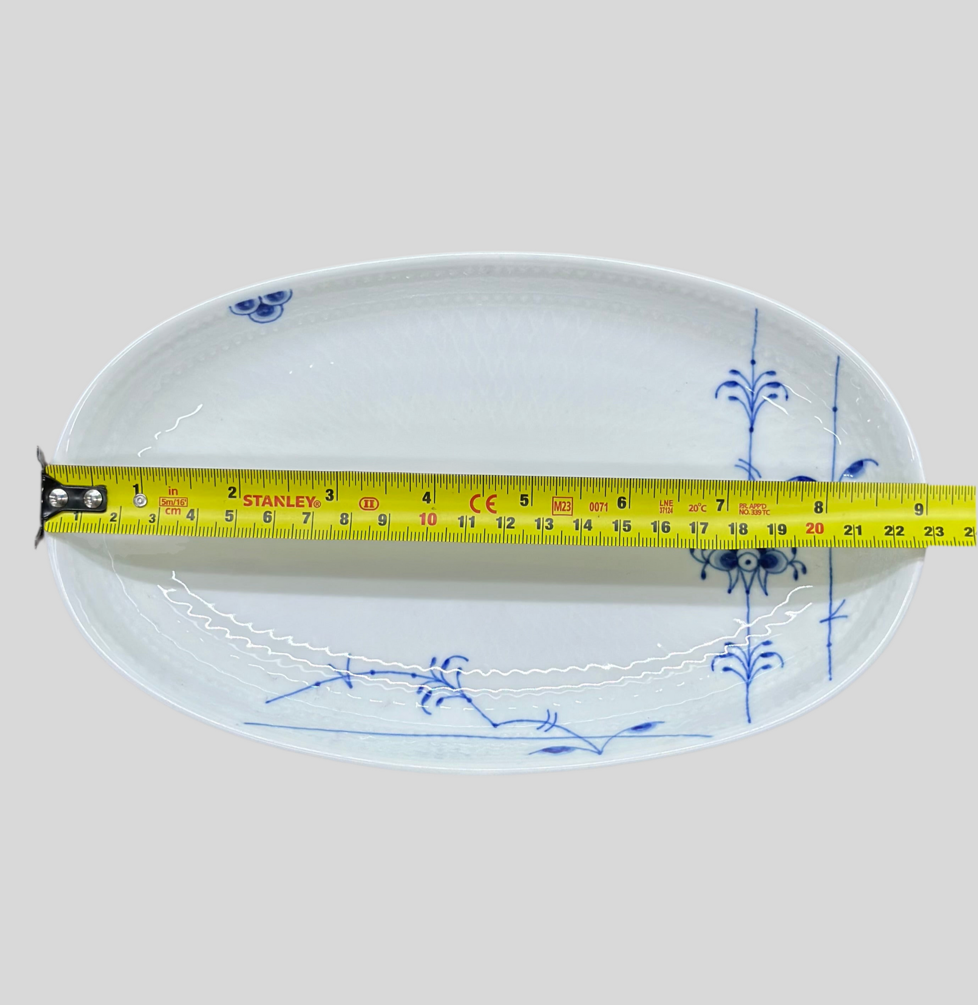 This elegant Royal Copenhagen oval dish features the distinctive Blue Palmette pattern. The hand-painted design and subtly ribbed porcelain make it a beautiful and modern piece, perfect for serving or display.