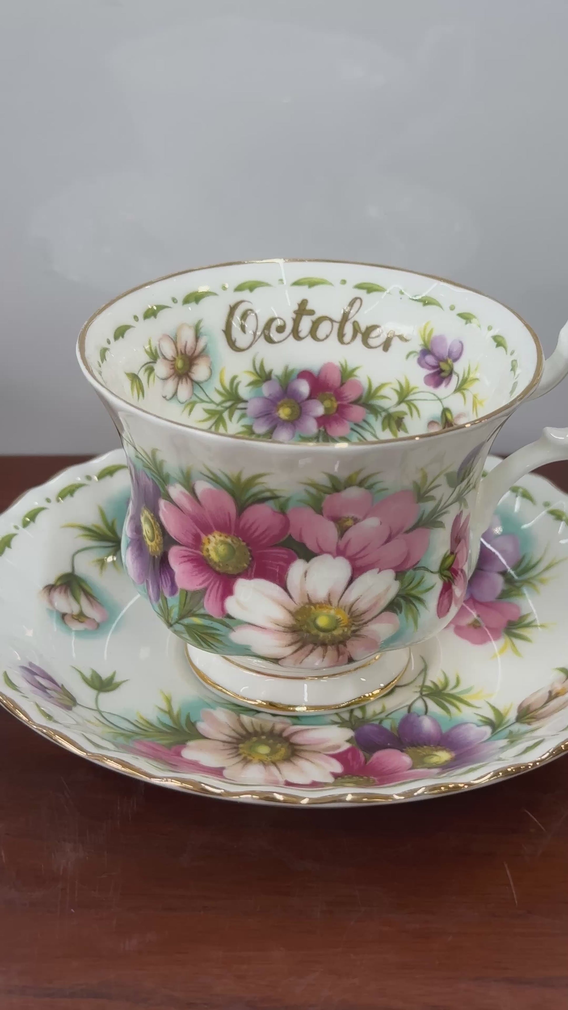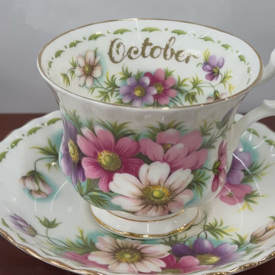 Vintage Royal Albert October Cosmos Flower of the Month Teacup Duo | Fine Bone China Made in England Collectible | OOKII
